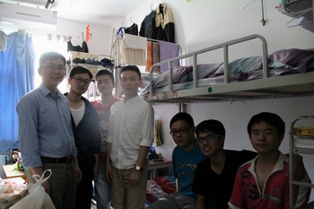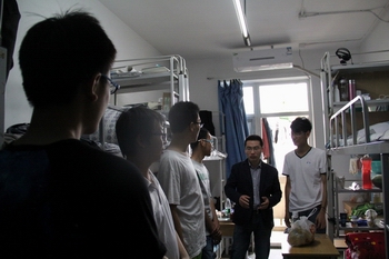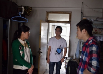 名班主任集体走访学生宿舍和实验室,在宿舍和实验室与同学交流近期学习和生活,同时给每一名学生带上了香蕉。在走访过程中班主任建议学生多参加户外锻炼,提醒即将到来的“五一”小假外出安全和宿舍安全。全院各个班级清扫宿舍开展“五一大扫除”,与走访宿舍的班主任拍宿舍全家福。