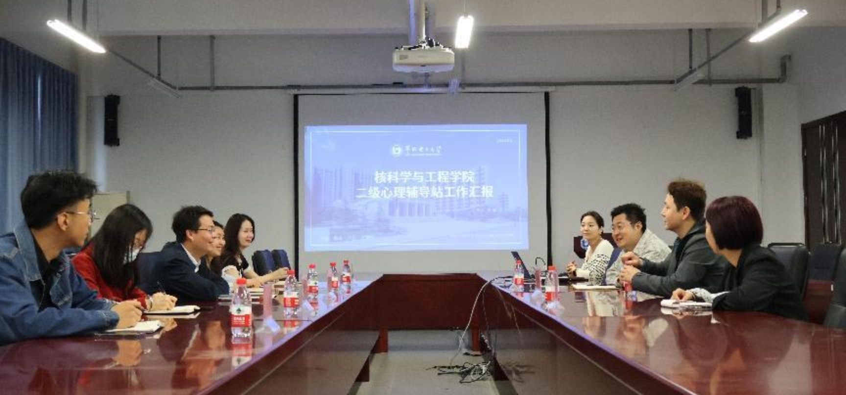 为推进辅导站建设高质量发展,5月5日上午,核学院邀请党委学生工作部副部长彭军林、心理健康教育中心余小霞、郝一丹、宋晓月和王争等老师走访太阳成官网“核馨驿站”二级心理辅导站。
