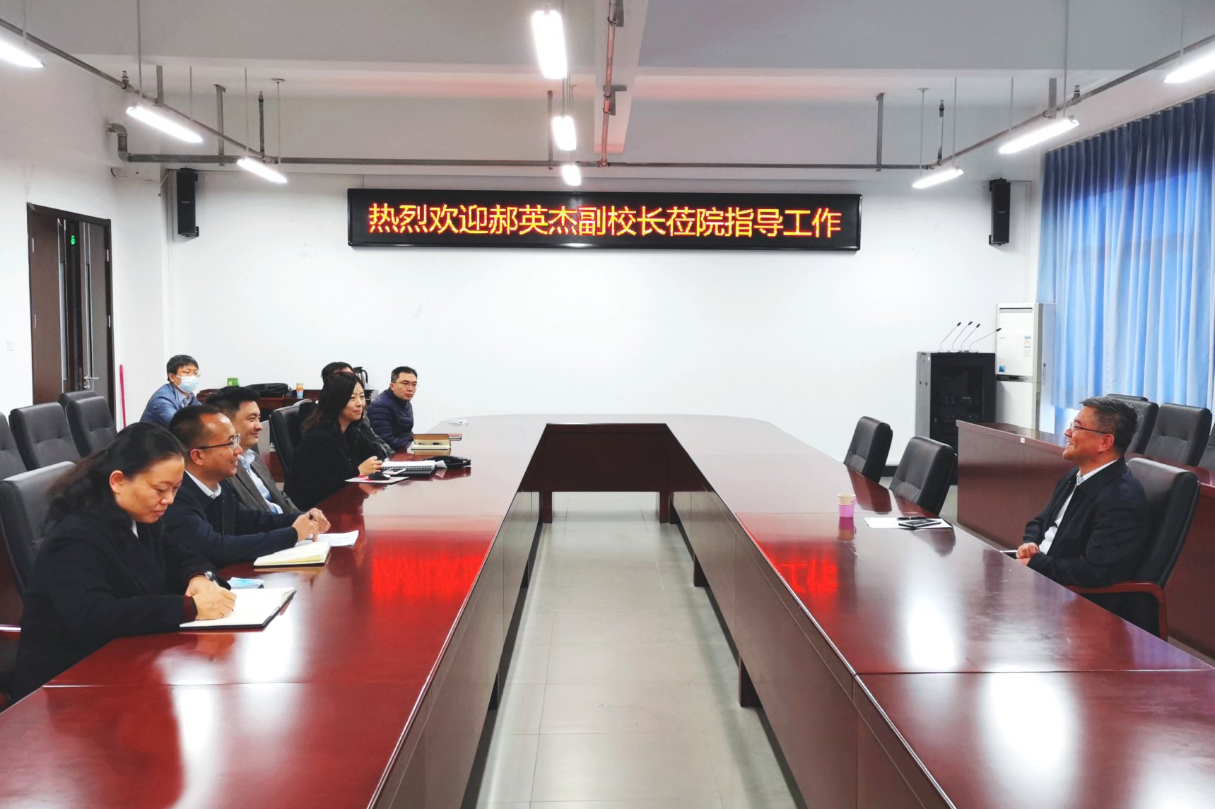 郝校长在认真听取汇报后对学院的工作表示了肯定,并提出几点建议:一是学院要积极整合校内外优势资源,加大校企合作力度,给学生就业提供更高的平台;二是要切实推进学院学科建设与发展,提高学科水平与质量,强力提升学科的综合实力与核心竞争力;三是指示学院要不断完善国际交流与合作战略布局,搭建高水平国际合作平台;四是希望学院积极开展多元化的育人工作,形成具有学院特色的“核文化”氛围,并以三全育人为核心,发挥企业专家资源优势,开展德育品牌创设和三全育人体系化建设,助力学院各项事业再上新台阶。