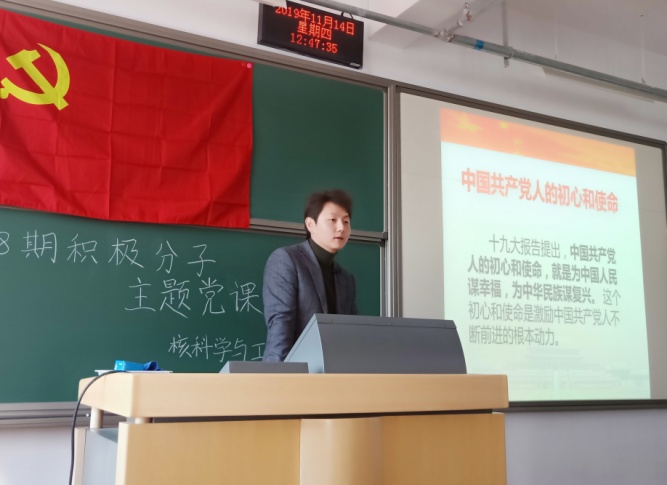 赵珥希老师以“不忘初心、牢记使命”为主线,讲述他作为一个共产党员如何从学院创立至今,太阳成官网发展中所遇到的困难与学全体师生为攻坚克难所做出的各项努力。从身边的事例出发,生动诠释了牢记使命,不忘初心的精神内涵。最后,赵珥希老师号召同学们要明确自己的目标,并不断为之努力奋斗,积极向党靠拢,不忘初心,牢记使命,砥砺前行!