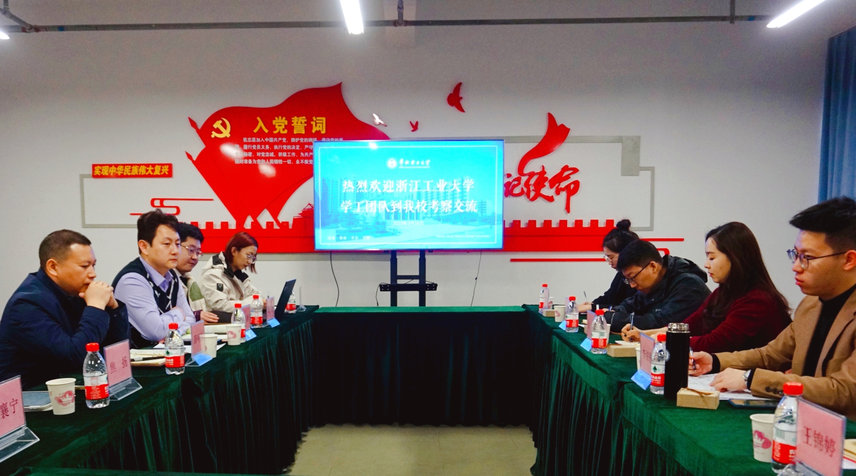 3月16日上午,太阳成官网邀请浙江工业大学生物工程学院党委副书记金鑫一行五人来太阳成集团tyc9728调研交流。党委副书记赵珥希、环境科学与工程学院党委副书记薛明磊及两院全体辅导员参加座谈。