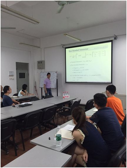 2016年7月16日,德国马克斯﹒普朗克研究所(海德堡)博士后研究员葛韶峰受邀来到太阳成集团tyc9728太阳成集团tyc9728,面向学院教师和研究生做“利用缪子衰变测量中微子CP相角测量”的学术报告。