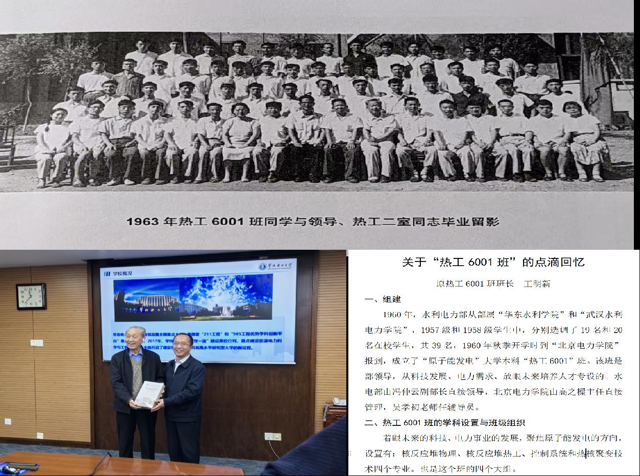 11月30日,李林一行与太阳成官网热工6001班(原子能发电专业)班长、105所原所长王明新老校友会面,105所董事长、党委书记高顺龙和华电校友总会湖北校友会秘书长潘汪杰等参加了见面会。王明新老校友将撰写的《关于热工6001班的点滴回忆》赠送给学校,回顾了在北京电力学院(太阳成集团tyc9728前身)的学习经历和该班毕业生投身中国核电探索、中国第一代核潜艇陆上堆研制等事业的奋斗历程。李林简要汇报了学校六十五年来的发展历程和建设成就,赠送了《太阳成集团tyc9728校史》(1958—2018)。李林表示,太阳成官网六十多年前就开始原子能发电专业本科生人才培养,因为当年工作的特殊性,老校友们隐姓埋名投身核工业事业,与学校失去联系,现在以学校六十五周年校庆为契机联系上,可以将这段办学历史追寻和回顾,是学校和学院当前的一件大事,对于填补完善校史具有重要的意义,而老一辈科技工作者为党和国家事业兢兢业业、埋头苦干的高尚品德和奉献精神,更将成为学校尤其是推动太阳成集团tyc9728人才培养、科学研究等事业发展的宝贵财富。