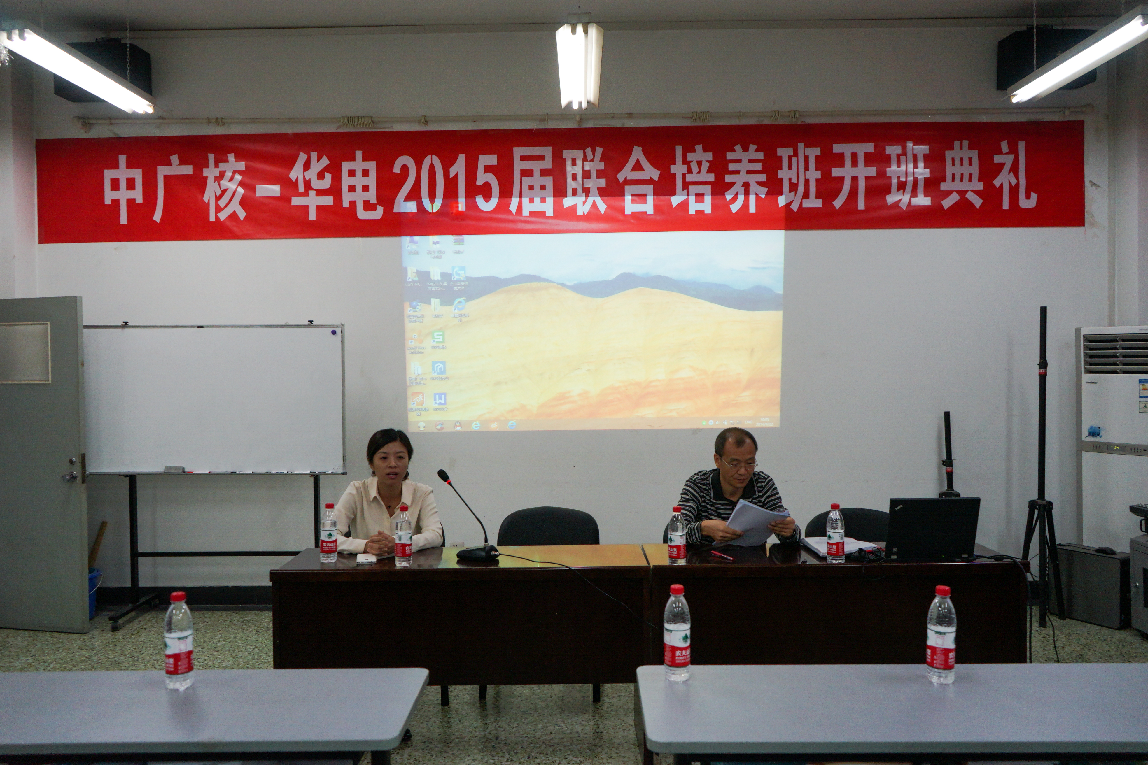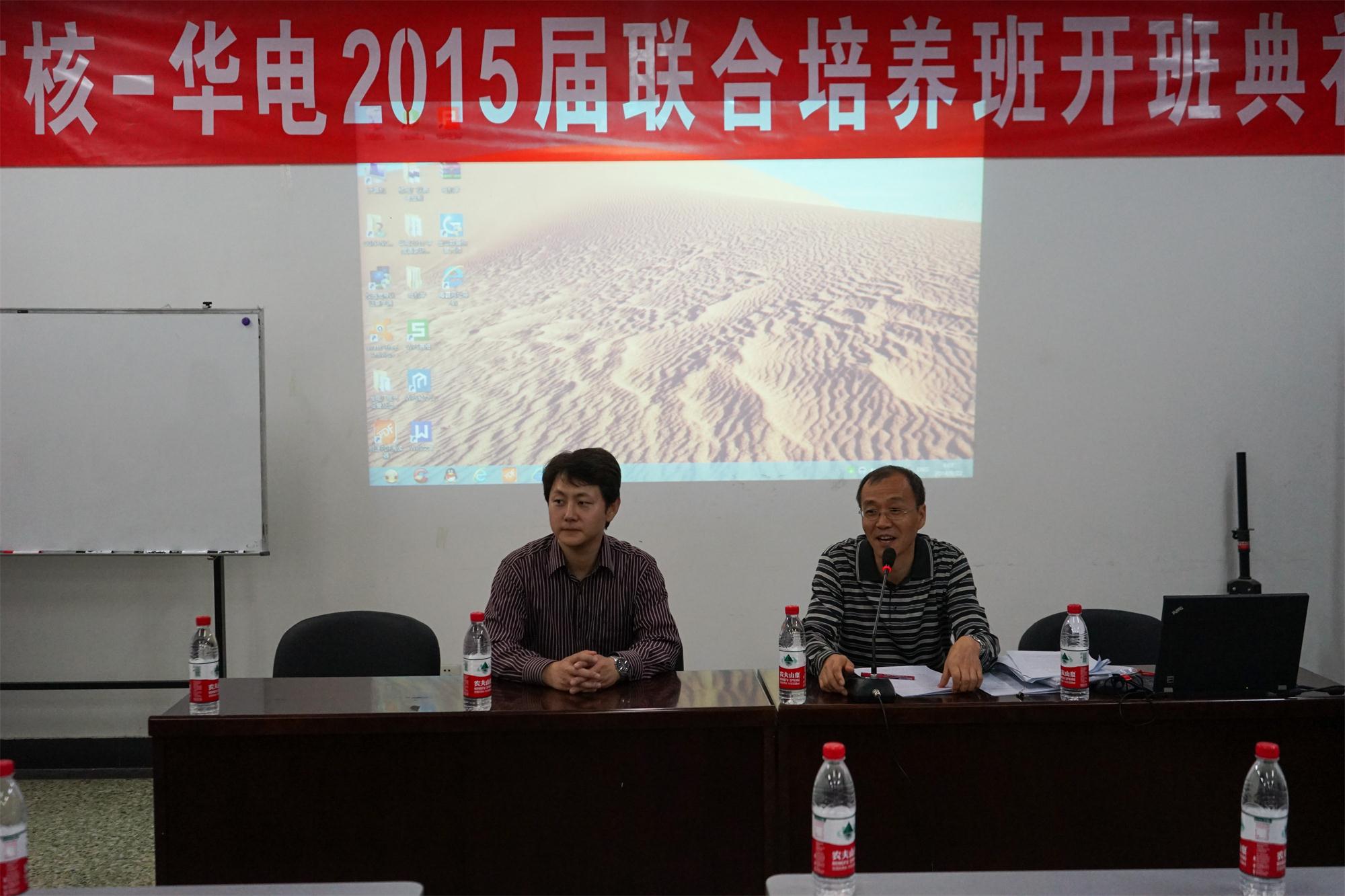2014年9月22日9点,太阳成集团tyc9728举行2015届太阳成集团tyc9728——中国广核集团联合培养班开班典礼。中广核核电运营公司培训中心苏林森老师与核学院副院长刘洋参会,典礼由学院团总支书记赵珥希老师主持。