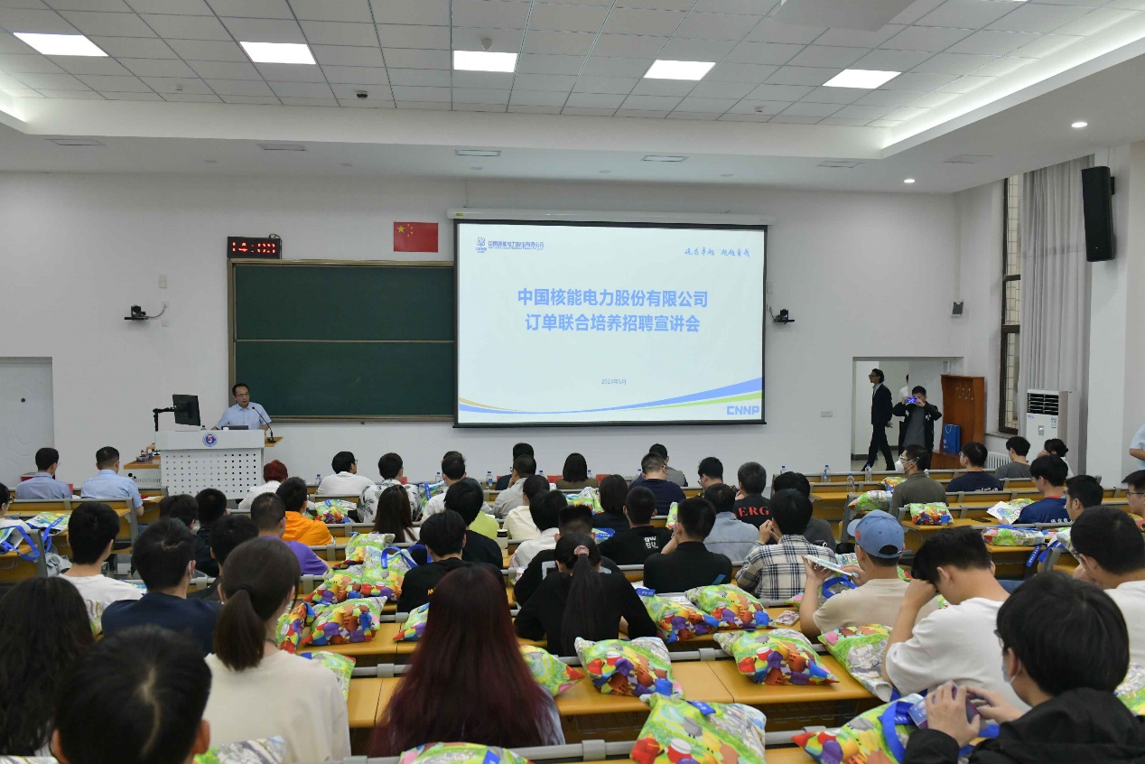 刘先劼代表中国核能电力股份有限公司对学校一直以来对中核核电人才培养和招聘工作的大力支持表示感谢。刘先劼表示欢迎学生们积极加盟中核集团,为推动建设核电强国而努力奋斗。