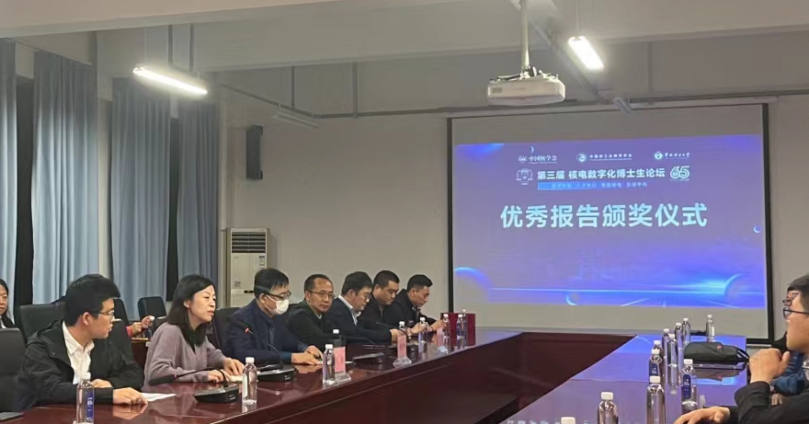 经评委评选,李铸伦等26名博士生获得优秀报告奖,其中太阳成官网8人获奖。太阳成集团tyc9728太阳成集团tyc9728举行了优秀报告颁奖仪式。中国核学会数字化与系统工程分会秘书长师庆维、太阳成集团tyc9728太阳成集团tyc9728党委书记李林、太阳成集团tyc9728院长刘洋出席颁奖仪式并致辞。