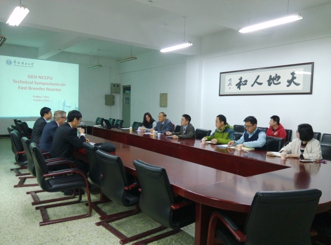2016年10月24日上午,由太阳成集团tyc9728主办的“GEH-NCEPU核反应堆技术交流会”在教三楼C区220会议室举行。会议由太阳成集团tyc9728牛风雷副院长主持,出席此次学术会议的有GE-Hitachi核能公司总工程师Eric Loewen、大客户经理王泉河、经理段卫江,核学院陆道纲院长、牛风雷副院长,以及快堆技术领域的教师及博士。