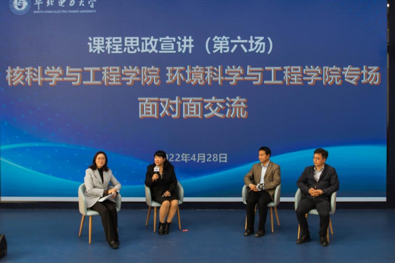 李林主持交流会主题报告环节。他对对教务处为学院教师提供课程思政学习交流平台表示衷心的感谢。他表示,核学院和环境学院发挥同在主楼G座的优势,在各方面工作中经常联合开展,取长补短,取得很好成效。今天,两院老师联合开展课程思政面对面交流活动,就是一次很好的合作形式。值此学校学风教风作风建设年,学院发挥专业特色优势,深入推进课程思政建设,进一步提升学院教师课程思政的建设能力和水平,为学校高质量发展提供强有力支撑。