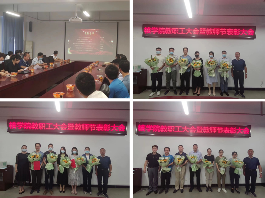 会上,在我国第三十八个教师节来临之际,学院简要回顾了过去一年的工作和取得的成绩,刘洋宣读了教师节表彰名单,对在人才培养和教学科研管理中获省部级和学校奖励的教师进行表彰,并由各分管领导献花,向全体教职工的辛勤努力和无私奉献表示衷心感谢,向全体教职工送上教师节和中秋节的诚挚问候。